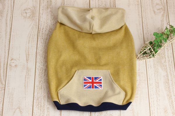 この生地は、裏がピッコリー柄のリバーシブル生地になっているため、フードとポケットはピッコリー柄に仕上げました。とてもオシャレですよ。♪♪